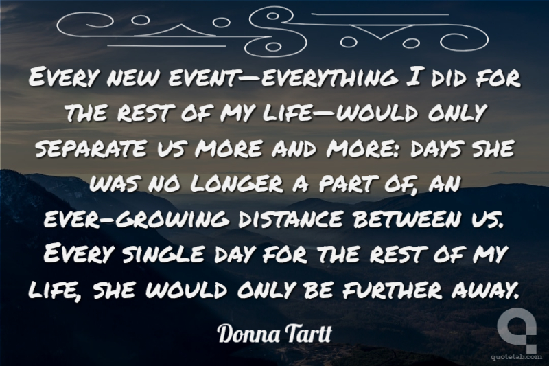 Every new event—everything I did for the rest of my life—would only separate us more and more: days she was no longer a part of, an ever-growing distance between us. Every single day for the rest of my life, she would only be further away.