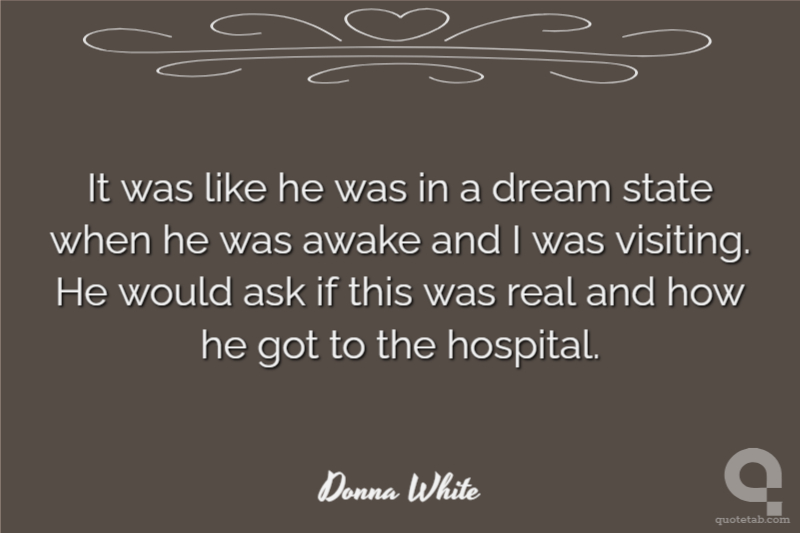It was like he was in a dream state when he was awake and I was visiting. He would ask if this was real and how he got to the hospital.