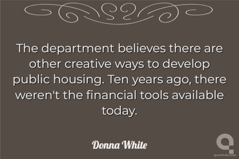 The department believes there are other creative ways to develop public housing. Ten years ago, there weren't the financial tools available today.