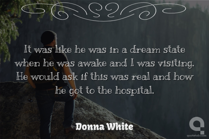It was like he was in a dream state when he was awake and I was visiting. He would ask if this was real and how he got to the hospital.