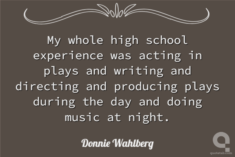 My whole high school experience was acting in plays and writing and directing and producing plays during the day and doing music at night.
