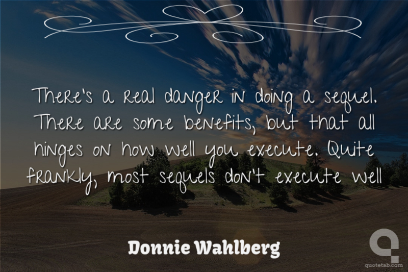 There's a real danger in doing a sequel. There are some benefits, but that all hinges on how well you execute. Quite frankly, most sequels don't execute well
