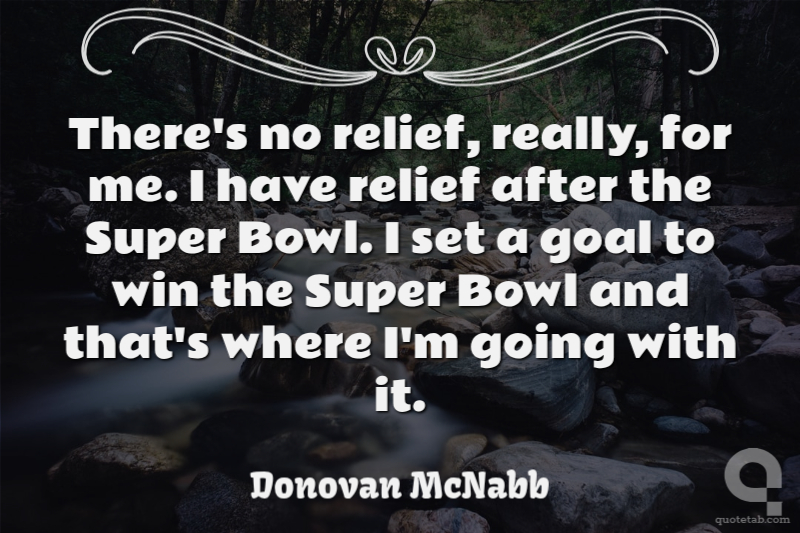 There's no relief, really, for me. I have relief after the Super Bowl. I set a goal to win the Super Bowl and that's where I'm going with it.