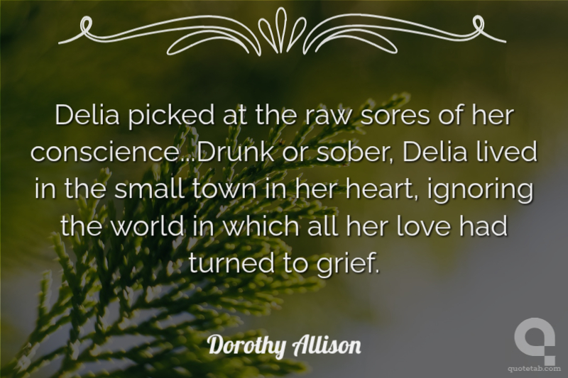 Delia picked at the raw sores of her conscience...Drunk or sober, Delia lived in the small town in her heart, ignoring the world in which all her love had turned to grief.