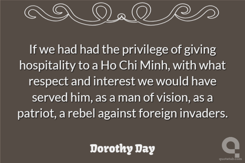 If we had had the privilege of giving hospitality to a Ho Chi Minh, with what respect and interest we would have served him, as a man of vision, as a patriot, a rebel against foreign invaders.