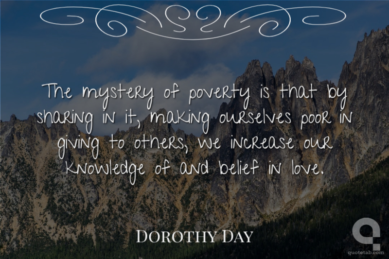 The mystery of poverty is that by sharing in it, making ourselves poor in giving to others, we increase our knowledge of and belief in love.