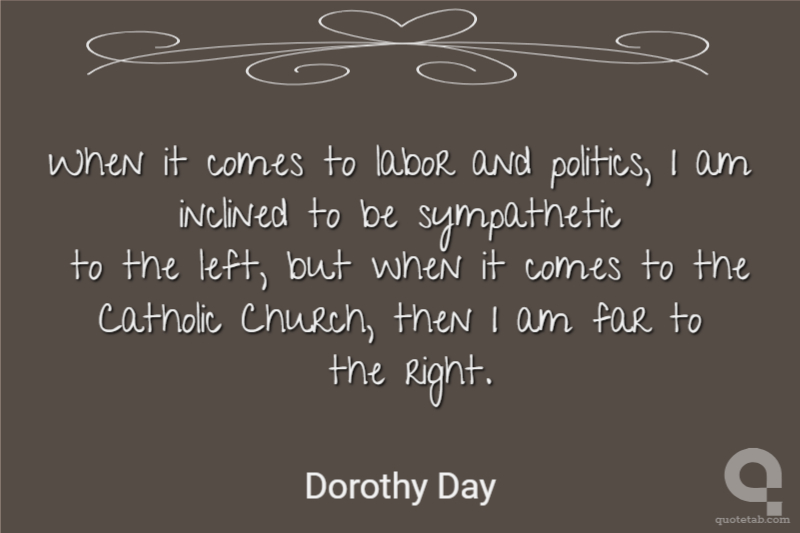 When it comes to labor and politics, I am inclined to be sympathetic to the left, but when it comes to the Catholic Church, then I am far to the right.
