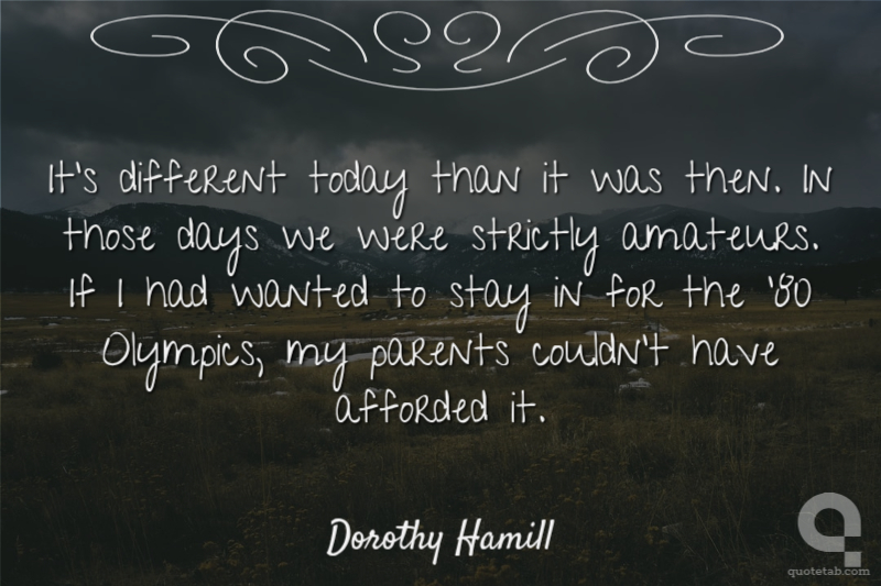 It's different today than it was then. In those days we were strictly amateurs. If I had wanted to stay in for the '80 Olympics, my parents couldn't have afforded it.