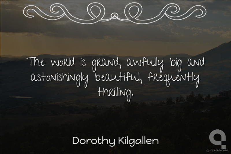The world is grand, awfully big and astonishingly beautiful, frequently thrilling.
