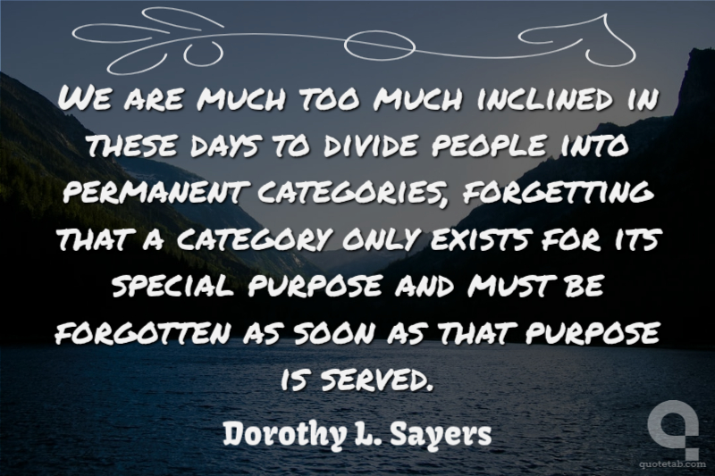 We are much too much inclined in these days to divide people into permanent categories, forgetting that a category only exists for its special purpose and must be forgotten as soon as that purpose is served.