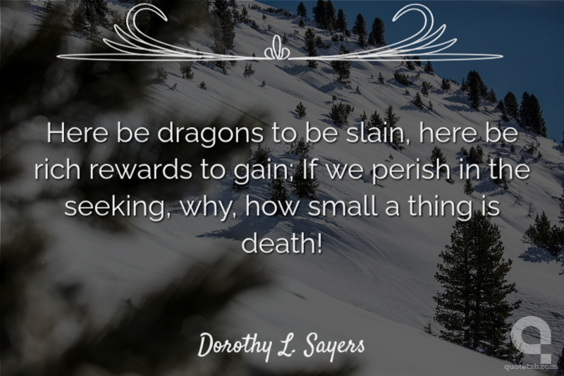 Here be dragons to be slain, here be rich rewards to gain; If we perish in the seeking, why, how small a thing is death!