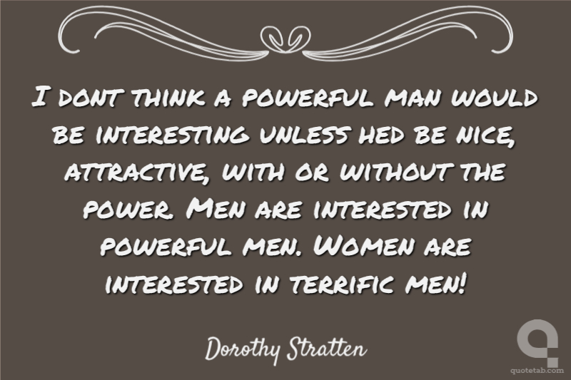 I dont think a powerful man would be interesting unless hed be nice, attractive, with or without the power. Men are interested in powerful men. Women are interested in terrific men!