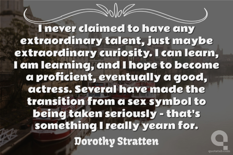 I never claimed to have any extraordinary talent, just maybe extraordinary curiosity. I can learn, I am learning, and I hope to become a proficient, eventually a good, actress. Several have made the transition from a sex symbol to being taken seriously - that's something I really yearn for.