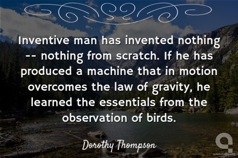 Inventive man has invented nothing -- nothing from scratch. If he has produced a machine that in motion overcomes the law of gravity, he learned the essentials from the observation of birds.