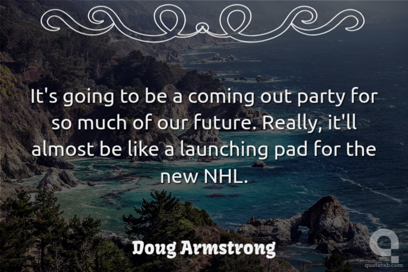 It's going to be a coming out party for so much of our future. Really, it'll almost be like a launching pad for the new NHL.