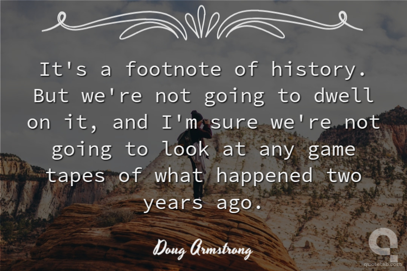It's a footnote of history. But we're not going to dwell on it, and I'm sure we're not going to look at any game tapes of what happened two years ago.