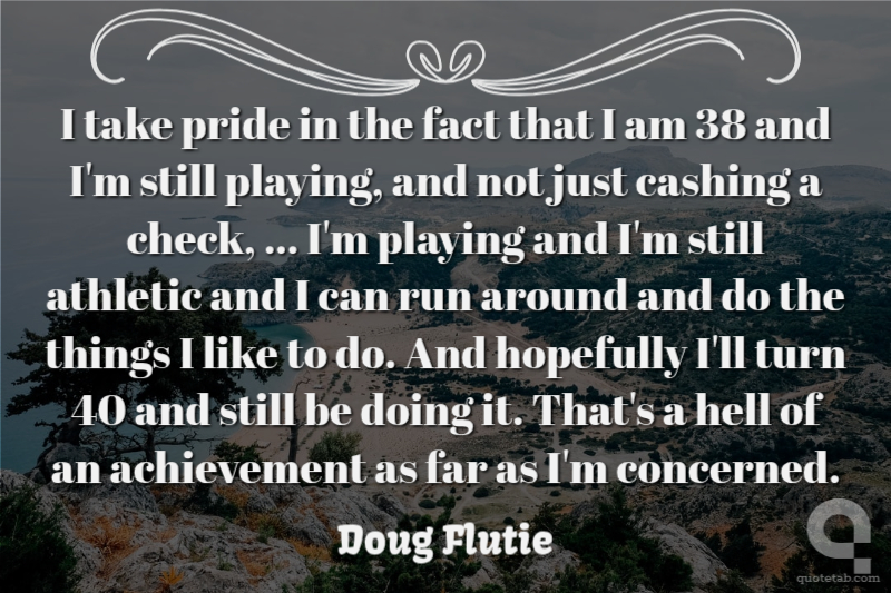 I take pride in the fact that I am 38 and I'm still playing, and not just cashing a check, ... I'm playing and I'm still athletic and I can run around and do the things I like to do. And hopefully I'll turn 40 and still be doing it. That's a hell of an achievement as far as I'm concerned.