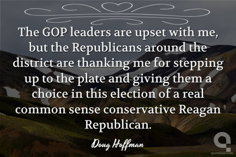 The GOP leaders are upset with me, but the Republicans around the district are thanking me for stepping up to the plate and giving them a choice in this election of a real common sense conservative Reagan Republican.