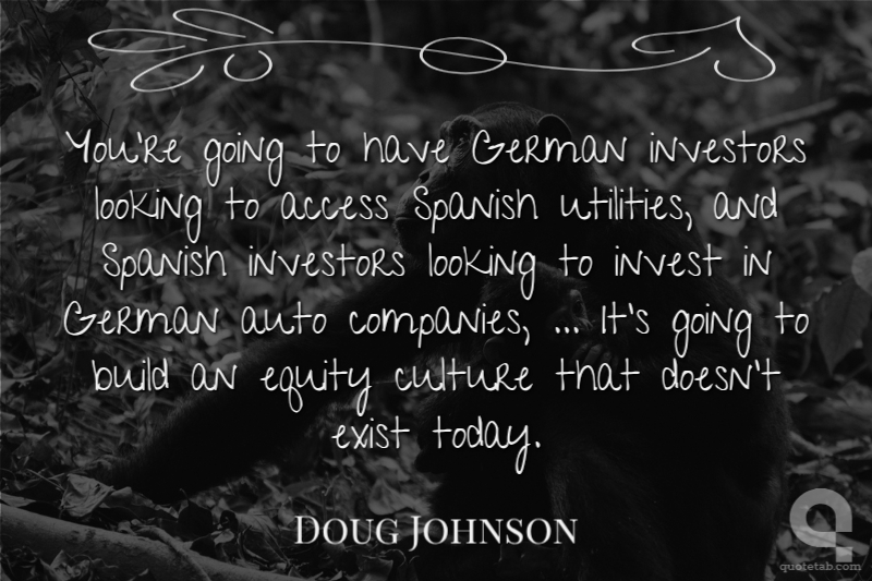 You're going to have German investors looking to access Spanish utilities, and Spanish investors looking to invest in German auto companies, ... It's going to build an equity culture that doesn't exist today.
