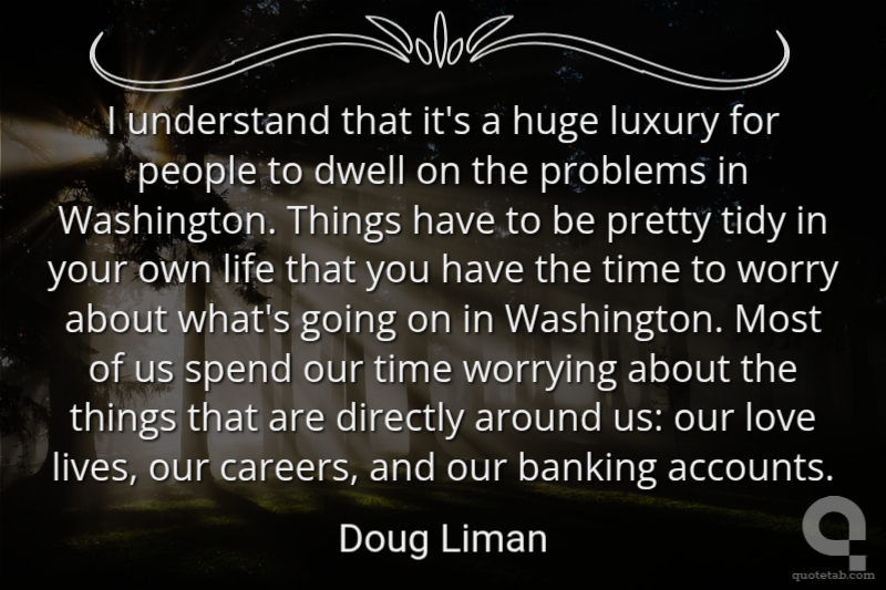 I understand that it's a huge luxury for people to dwell on the problems in Washington. Things have to be pretty tidy in your own life that you have the time to worry about what's going on in Washington. Most of us spend our time worrying about the things that are directly around us: our love lives, our careers, and our banking accounts.