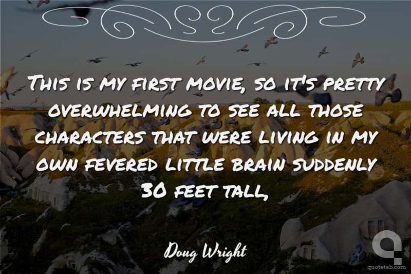 This is my first movie, so it's pretty overwhelming to see all those characters that were living in my own fevered little brain suddenly 30 feet tall,