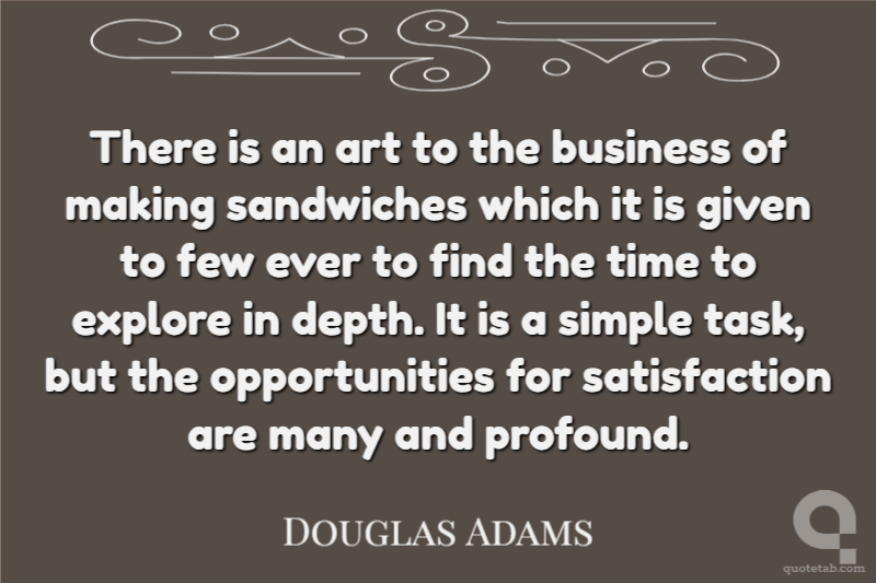 The available worlds looked pretty grim. They had little to offer him because he had little to offer them. He had been extremely chastened to realize that although he originally came from a world which had cars and computers and ballet and Armagnac, he didn't, by himself, know how any of it worked. He couldn't do it. Left to his own devices he couldn't build a toaster. He could just about make a sandwich and that was it.