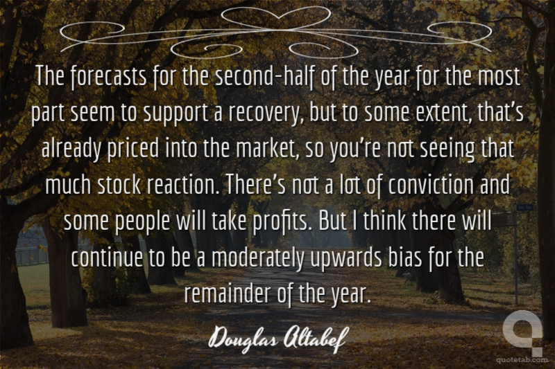 The forecasts for the second-half of the year for the most part seem to support a recovery, but to some extent, that's already priced into the market, so you're not seeing that much stock reaction. There's not a lot of conviction and some people will take profits. But I think there will continue to be a moderately upwards bias for the remainder of the year.