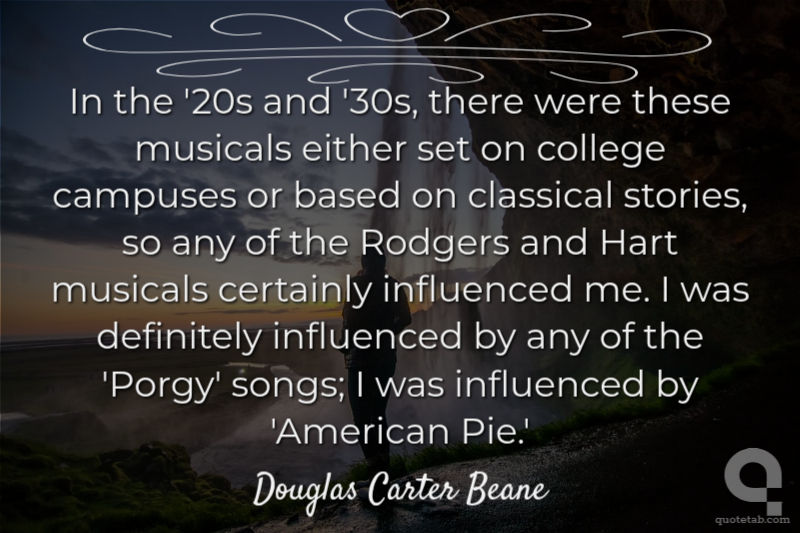 In the '20s and '30s, there were these musicals either set on college campuses or based on classical stories, so any of the Rodgers and Hart musicals certainly influenced me. I was definitely influenced by any of the 'Porgy' songs; I was influenced by 'American Pie.'