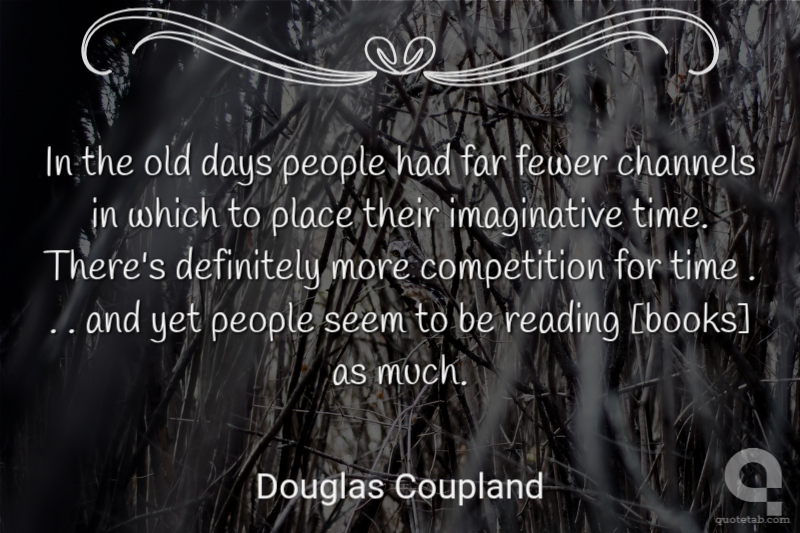 In the old days people had far fewer channels in which to place their imaginative time. There's definitely more competition for time . . . and yet people seem to be reading [books] as much.