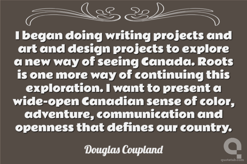 I began doing writing projects and art and design projects to explore a new way of seeing Canada. Roots is one more way of continuing this exploration. I want to present a wide-open Canadian sense of color, adventure, communication and openness that defines our country.