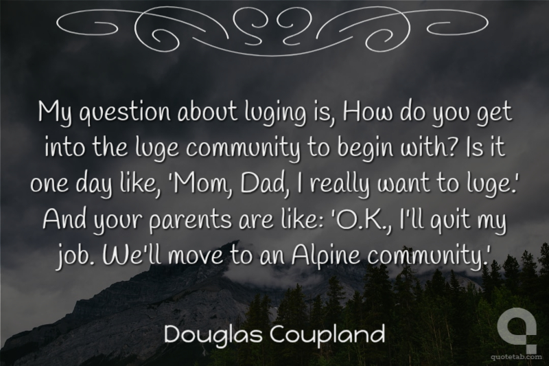 My question about luging is, How do you get into the luge community to begin with? Is it one day like, 'Mom, Dad, I really want to luge.' And your parents are like: 'O.K., I'll quit my job. We'll move to an Alpine community.'