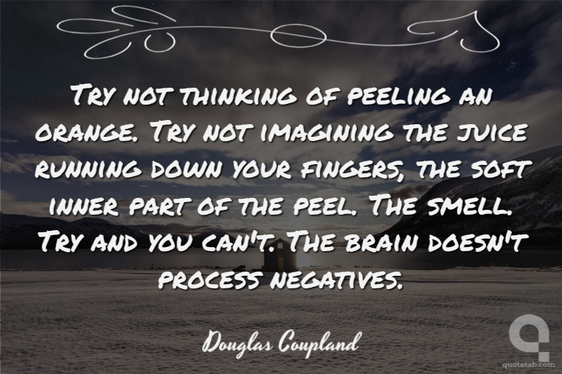 Try not thinking of peeling an orange. Try not imagining the juice running down your fingers, the soft inner part of the peel. The smell. Try and you can't. The brain doesn't process negatives.