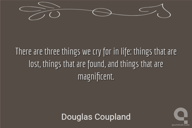 There are three things we cry about in life, things that are lost, things that are found, and things that are magnificent.