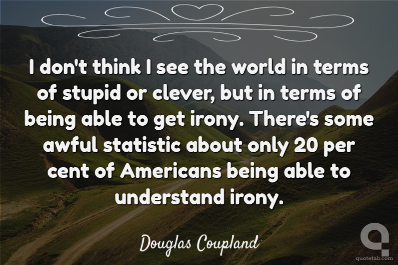 I don't think I see the world in terms of stupid or clever, but in terms of being able to get irony. There's some awful statistic about only 20 per cent of Americans being able to understand irony.