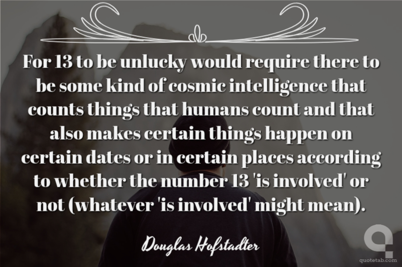 For 13 to be unlucky would require there to be some kind of cosmic intelligence that counts things that humans count and that also makes certain things happen on certain dates or in certain places according to whether the number 13 'is involved' or not (whatever 'is involved' might mean).
