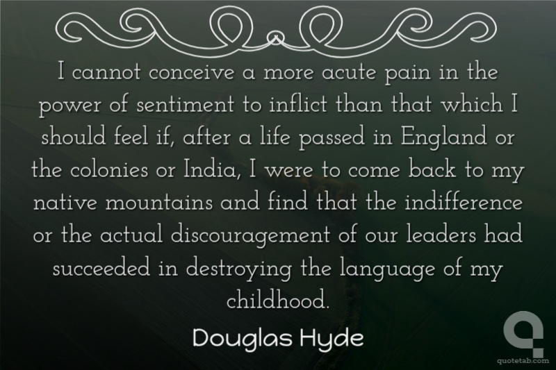 I cannot conceive a more acute pain in the power of sentiment to inflict than that which I should feel if, after a life passed in England or the colonies or India, I were to come back to my native mountains and find that the indifference or the actual discouragement of our leaders had succeeded in destroying the language of my childhood.