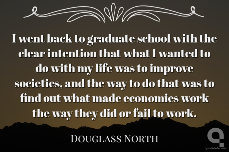 I went back to graduate school with the clear intention that what I wanted to do with my life was to improve societies, and the way to do that was to find out what made economies work the way they did or fail to work.