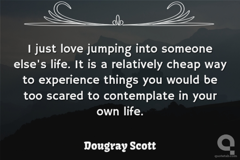 I just love jumping into someone else's life. It is a relatively cheap way to experience things you would be too scared to contemplate in your own life.