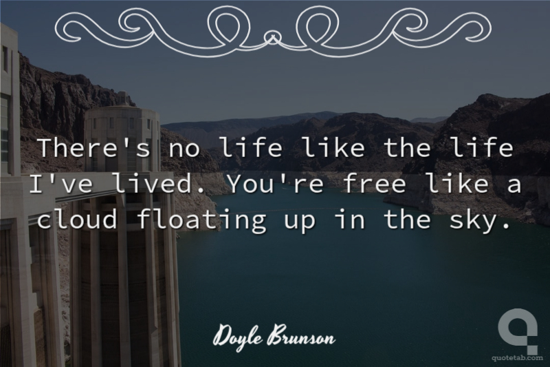 There's no life like the life I've lived. You're free like a cloud floating up in the sky.
