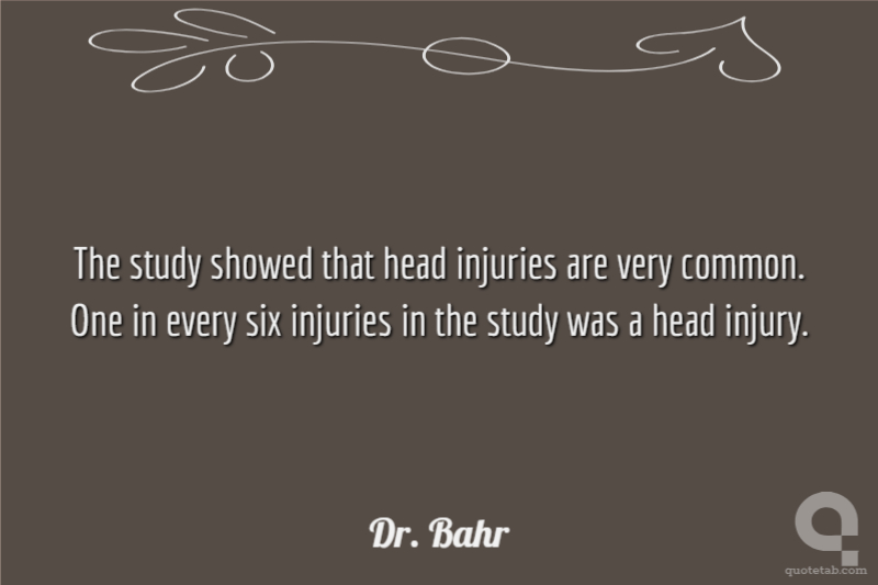 The study showed that head injuries are very common. One in every six injuries in the study was a head injury.
