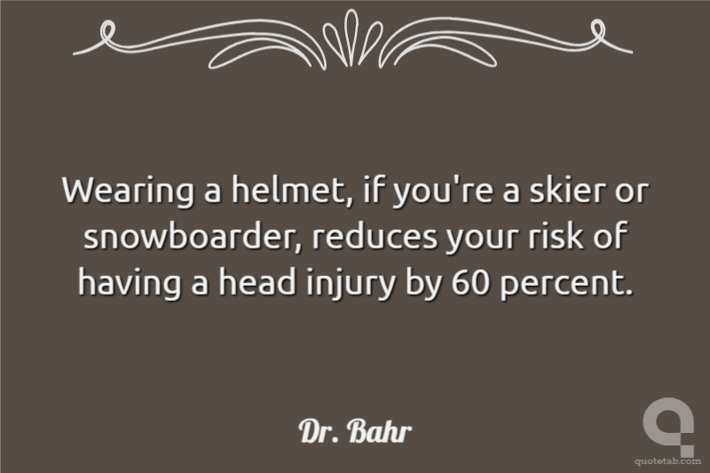 Wearing a helmet, if you're a skier or snowboarder, reduces your risk of having a head injury by 60 percent.