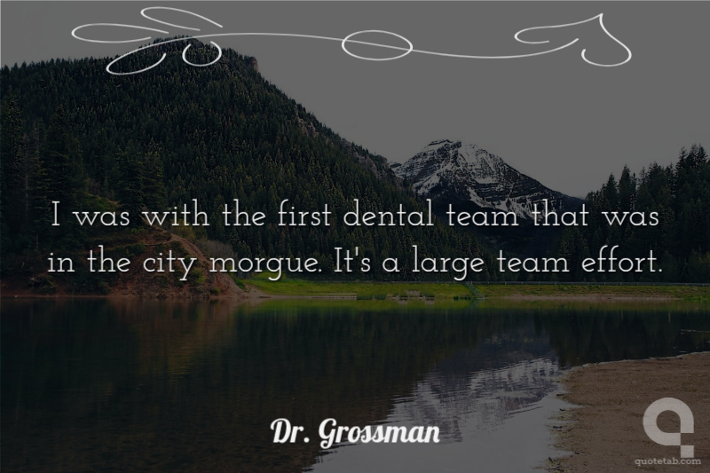 I was with the first dental team that was in the city morgue. It's a large team effort.
