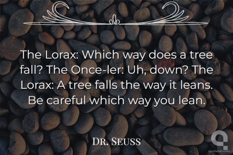 The Lorax: Which way does a tree fall? The Once-ler: Uh, down? The Lorax: A tree falls the way it leans. Be careful which way you lean.
