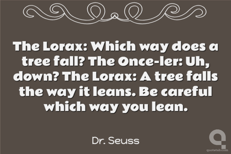 The Lorax: Which way does a tree fall? The Once-ler: Uh, down? The Lorax: A tree falls the way it leans. Be careful which way you lean.