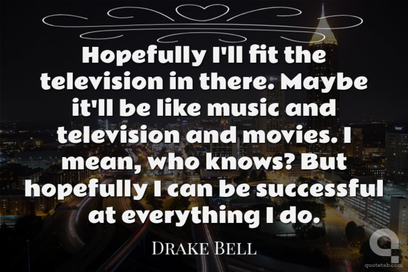 Hopefully I'll fit the television in there. Maybe it'll be like music and television and movies. I mean, who knows? But hopefully I can be successful at everything I do.