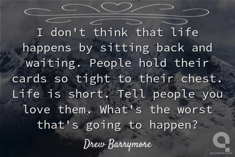 I don't think that life happens by sitting back and waiting. People hold their cards so tight to their chest. Life is short. Tell people you love them. What's the worst that's going to happen?