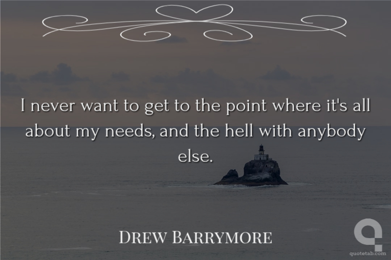 I never want to get to the point where it's all about my needs, and the hell with anybody else.