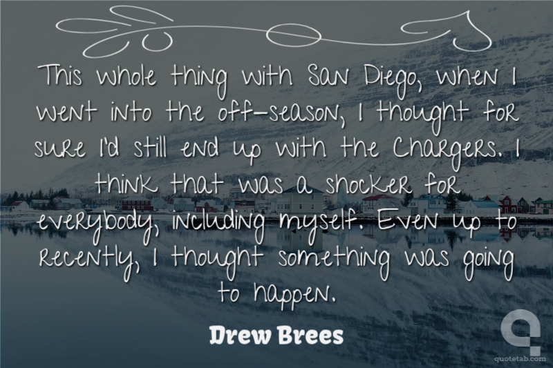 This whole thing with San Diego, when I went into the off-season, I thought for sure I'd still end up with the Chargers. I think that was a shocker for everybody, including myself. Even up to recently, I thought something was going to happen.