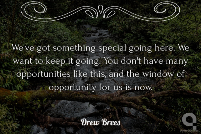 We've got something special going here. We want to keep it going. You don't have many opportunities like this, and the window of opportunity for us is now.