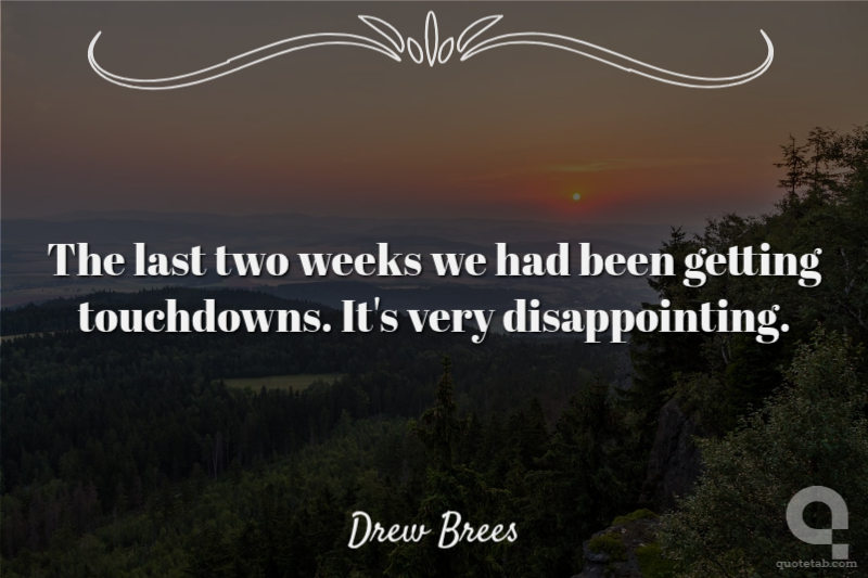 The last two weeks we had been getting touchdowns. It's very disappointing.